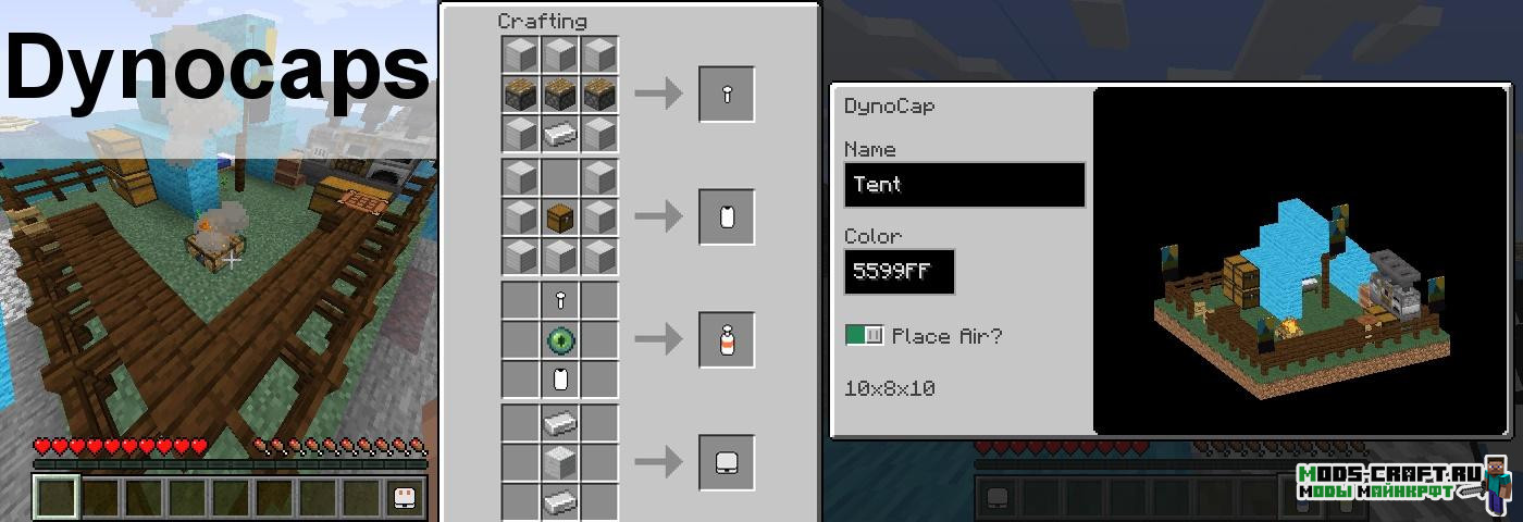 Мод добавит специальную капсулу, в которую можно поместить определённую площадь блоков, будь то дом или нужные предметы. Таким образом, вы сможете путешествовать по миру игры, не заботясь о строительстве хижины или временного лагеря каждый раз.