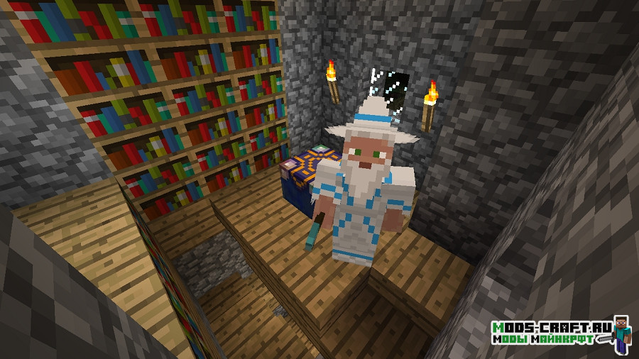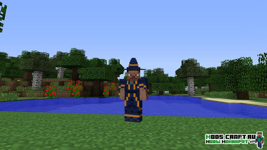 Интересны магический мод Electroblob’s Wizardry, который позволяет вам стать самым настоящим магом в Майнкрафт! Создавайте магические посохи, используйте волшебные свитки, покупайте зелья у торговцев-магов и сражайтесь используя крутые магические приёмы, вроде заморозки зомби, поднять его в воздух и даже остановить лианами.