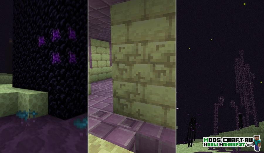 Мод улучшает измерения края, добавляя в него различные биомы, структуры, блоки, руды, новых мобов, а также новые предметы, оружие и инструменты. Теперь исследуя измерения края вы не будете так скучать, а погрузитесь в интересное приключение. Всё это касается и обычного измерения.