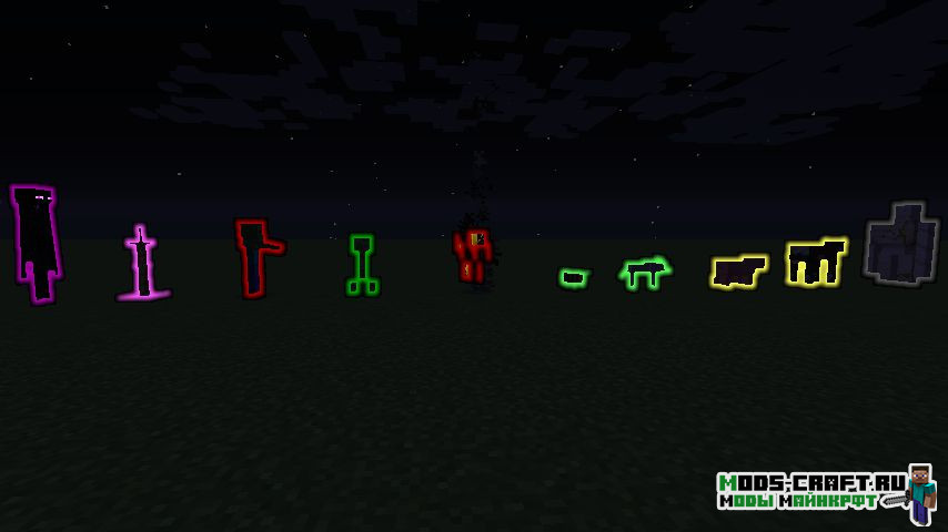 Entity/Player X-Ray — читерная модификация, позволяющая видеть игроков и мобов сквозь блоки при помощи ванильного свечения их контура. Вы можете добавлять определённых мобов в группы и установить им нужный цвет свечения.