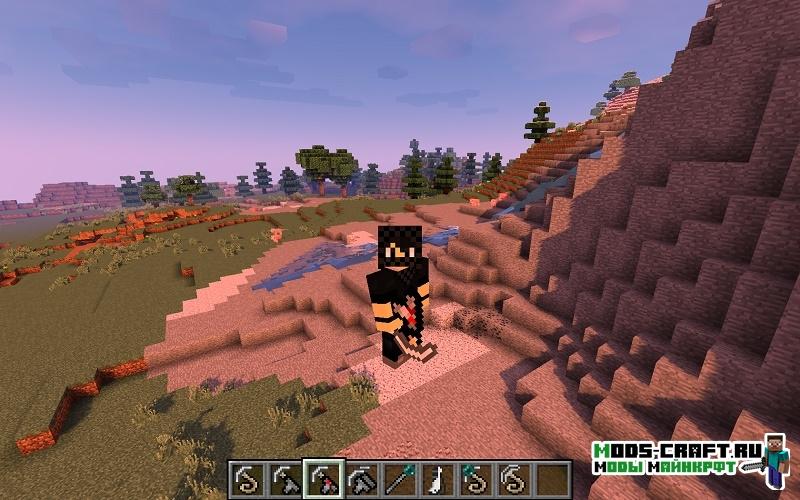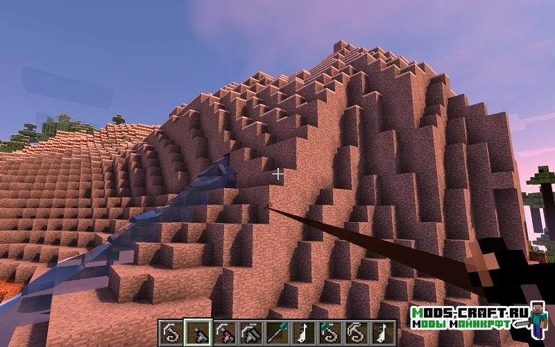 Мод Grappling Hook добавит специальную пистолет-крюк, который позволит вам цепляться за стену и подниматься на возвышенности таким образом, что очень облегчает перемещение по миру и преодоления различного рода естественных преград, вроде год и оврагов.