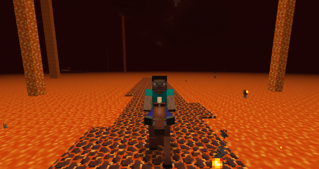- Седло огня — лошадь сможет ходить по магме, превращая её под собой в твёрдый блок.