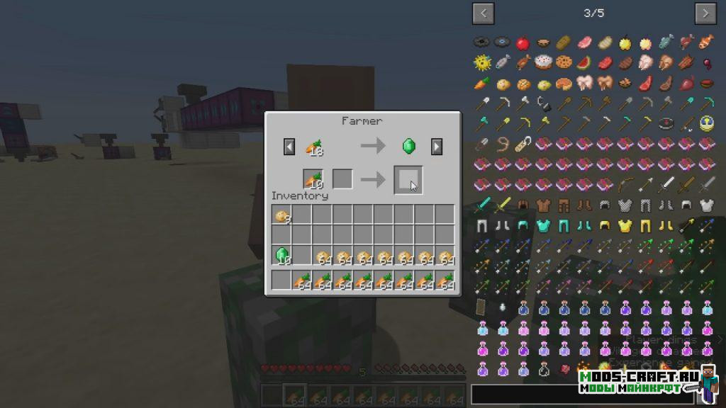 Мод сделает перемещение предметов в инвентаре более удобным и быстрым. При помощи специальных комбинаций клавиш вы сможете перемещать целые стаки предметов, одновременно перемещать несколько выделенных ячеек, а также всех совпадающих блоков. Также будет упрощена торговля с жителями.