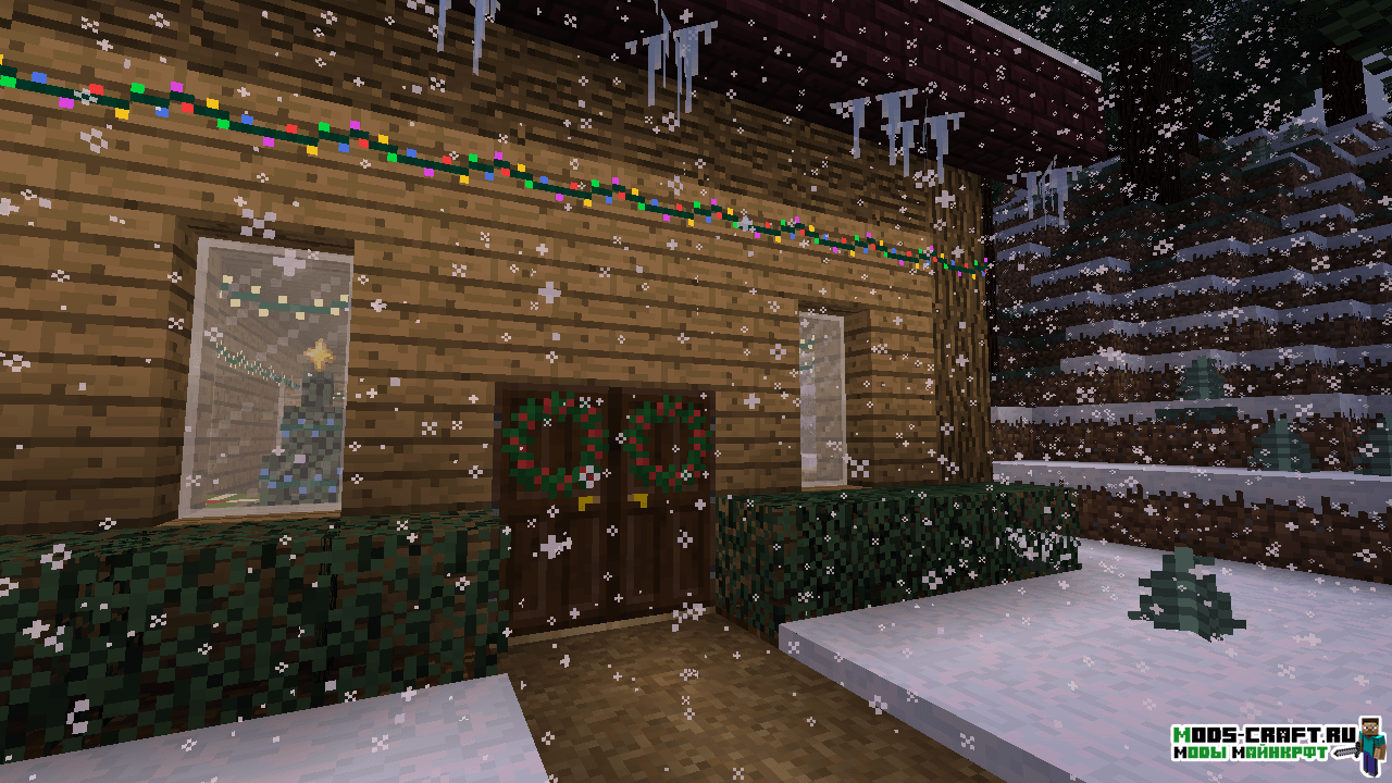 Мод добавляет множество новогодних украшений в игру Майнкрафт: рождественские елки и огни; венки; подарки; чулки; а также праздничные угощения, такие как сахарное печенье, леденцы и многое другое. Это поможет вам в создании уникальной праздничной атмосферы нового года и рождества в игре.