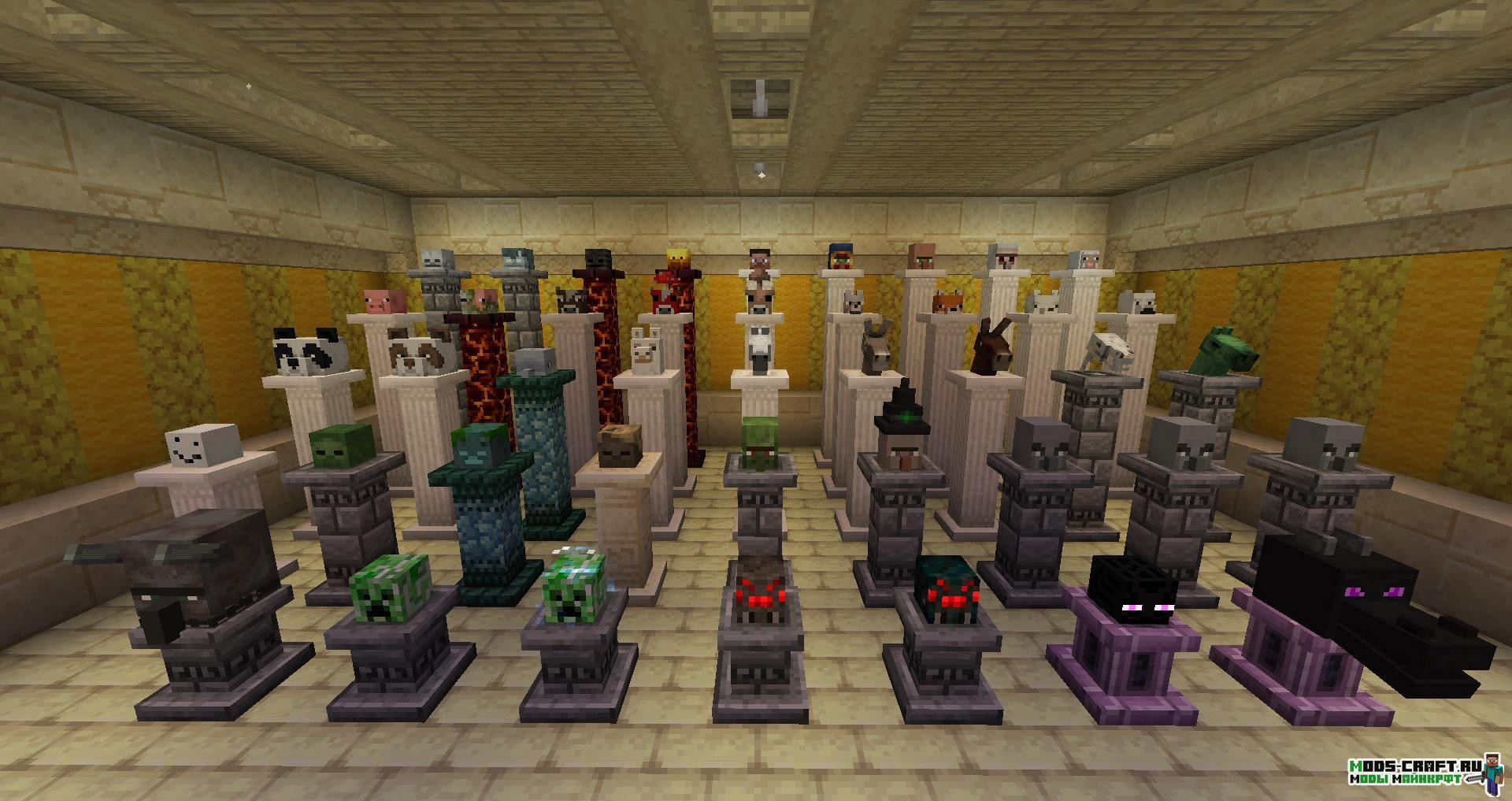 Мод добавляет около 33 голов мобов и новые пьедесталы, с помощью которых можно создать собственную коллекцию трофеев. Такие головы можно получить с помощью обычного убийства мобов или игроков (вероятность 2,5%), либо зачаровать топор на «обезглавливание» (вероятность с ним повыситься до 17,5%).