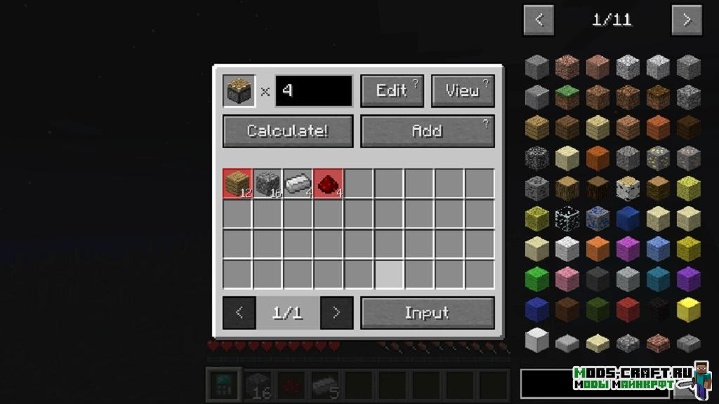 Мод Just Enough Calculation будет показывать, сколько ресурсов не хватает до крафта определённого предмета. Причём всё это работает с другими модами, в них также можно будет посмотреть количество и список недостающих предметов, что очень удобно.
