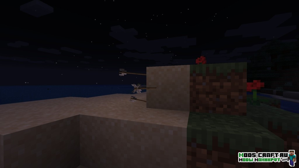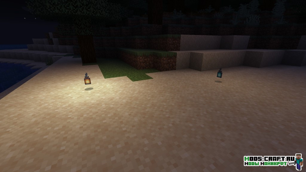 Мод добавит динамическое освещение для лежащих на земле или находящихся в руках руках факелов, фонарей и маяка. Также это можно отнести к лаве, горящим стрелам и горящим мобам. С подробными примерами можете ознакомиться чуть ниже на картинках.