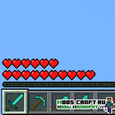 Мод добавит целую систему прокачки здоровья вашего персонажа по аналогии RPG-игр. Теперь при убийстве мобов будет накапливаться новый вид опыта HP-XP, и при достижении им нового уровня у вас добавится одно сердечко здоровья.