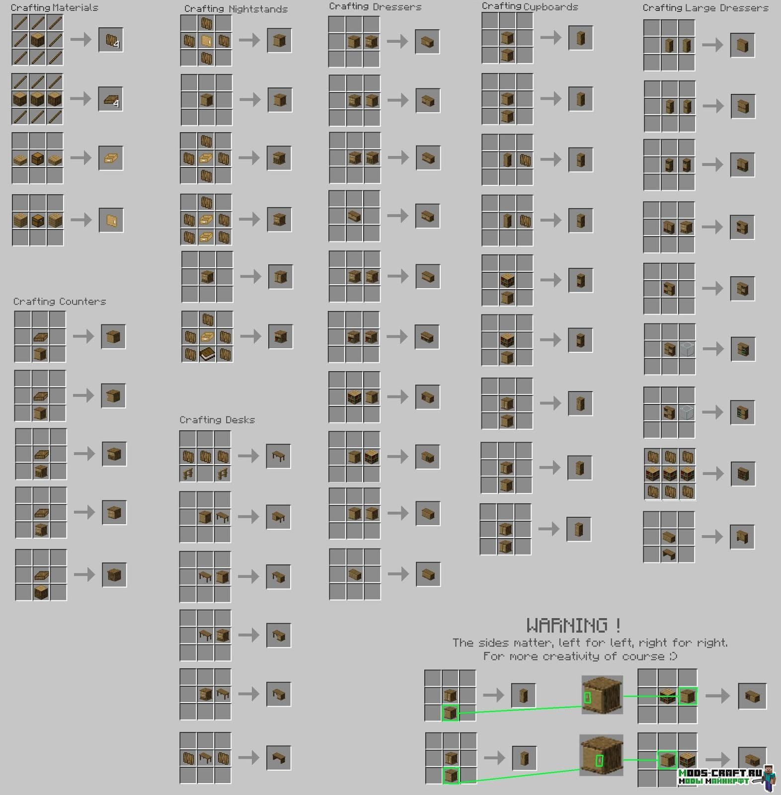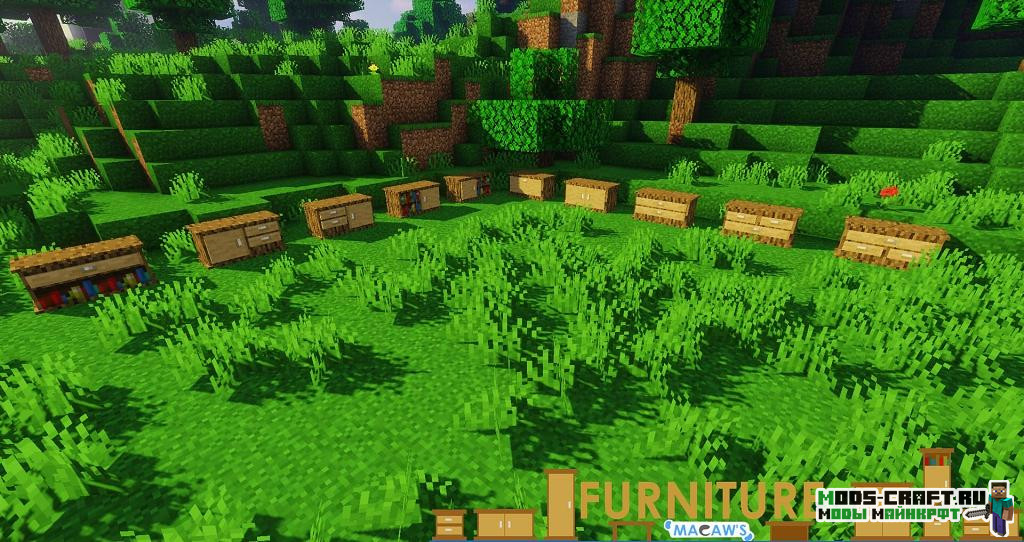 Мод Macaw’s Furniture добавит в игру Майнкрафт мебель в ванильном стиле с качественными текстурами. С помощью новых 45 предметов мебели вы сможете украсить свой дом новыми элементами декора, сохраняя ванильный стиль игры. Имеется возможность совмещать предметы мебели между собой, получая новые варианты и комбинации.