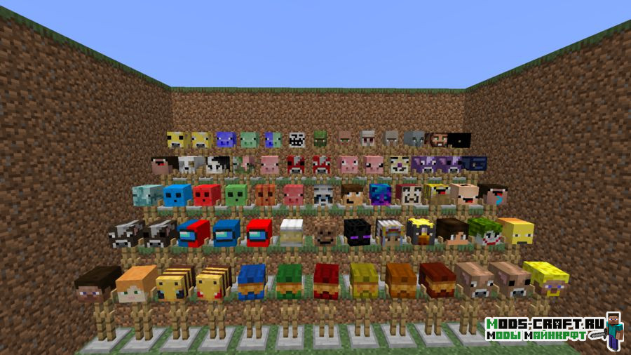 Masks-Hats — это мод, добавляющий шляпы и маски с изображением мобов, героев фильмов и мемов. Это может пригодится для РП или розыгрыша ваших друзей в игре. Все новые предметы могут быть изготовлены в режиме выживания, т.к. имеют свой рецепт. Для крафта любой шляпы или маски вам понадобиться слиток «Линабина», который получается путём переплавки в печи новой руды «Линабин». Она будет генерироваться в пещерах как и обычные руды, например, алмазы.