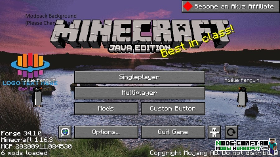Menu Companions — это косметический мод, добавляющий 2 мобов в главное меню игры — слева мод, добавленный в последнем обновлении, а справа скин игрока. Они будут следить и крутить головой за курсором игрока, а при нажатие на меню издавать звук. Вы сможете самостоятельно установить любых модов в меню через файл конфигурации.