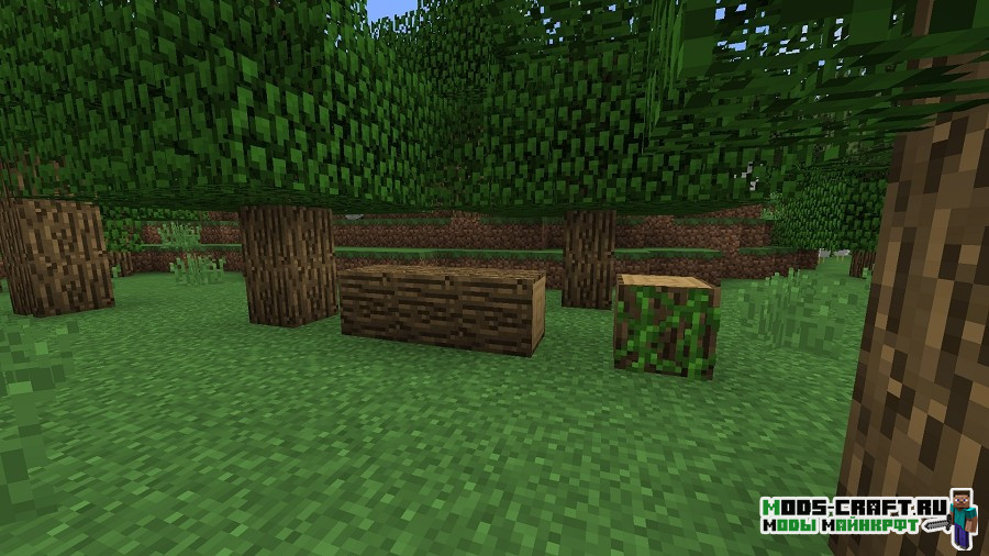 - Сундуки, таблички, лестницы и люки из всех видов деревьев, включая ель, березу и тропическое дерево.