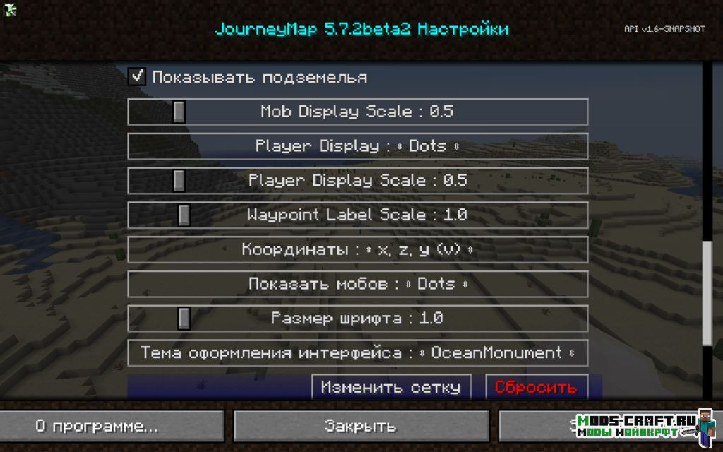 JourneyMap — популярный мод, добавляющий удобную мини-карту на интерфейс игры Майнкрафт с пометкой путевых точек и телепортов. Также можно смотреть карту вашего изученного мира в режиме реального времени прямо в браузере, для этого введите в адресную строку localhost:8080 (Для 1.7.10 и 1.8 необходимо включить веб-карту в настройках мода).