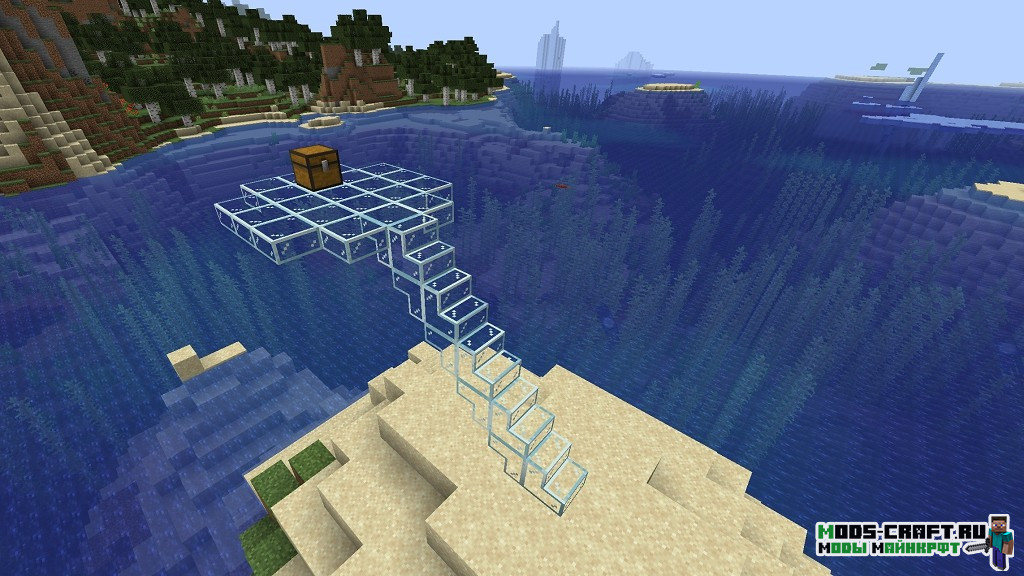 Небольшой мод, который добавит стеклянные полублоки и лестницы с красивым соединением без линии ограничения блока. С помощью этого можно строить красивые постройки из стеклянных блоков.