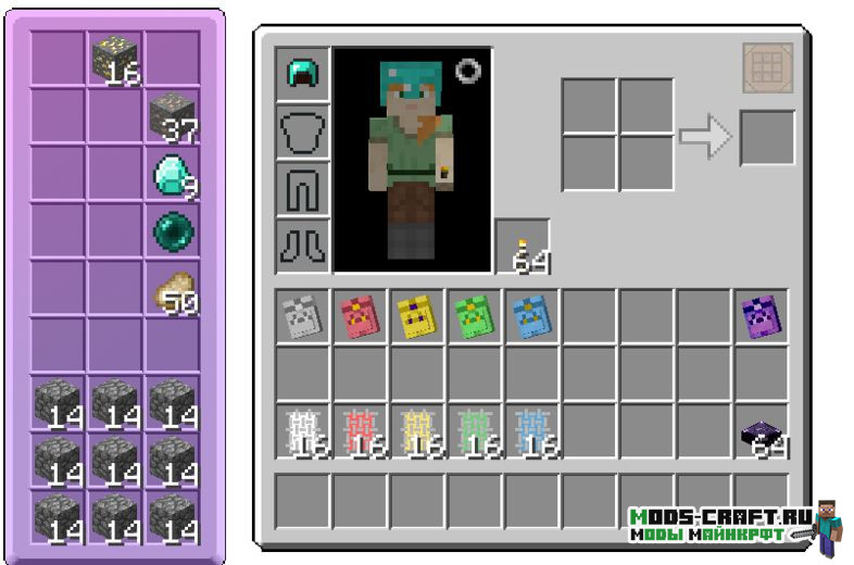 MultiBags добавляет рюкзаки в игру Майнкрафт. Они отличаются от подобных модов тем, что имеют уникальную и красивую 3D-текстуры, прочность, наличие эндер-рюкзака и собственный графический интерфейс рюкзака, который открывается в любом инвентаре. Также появятся инструменты для улучшения и починки таких рюкзаков.