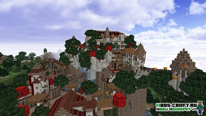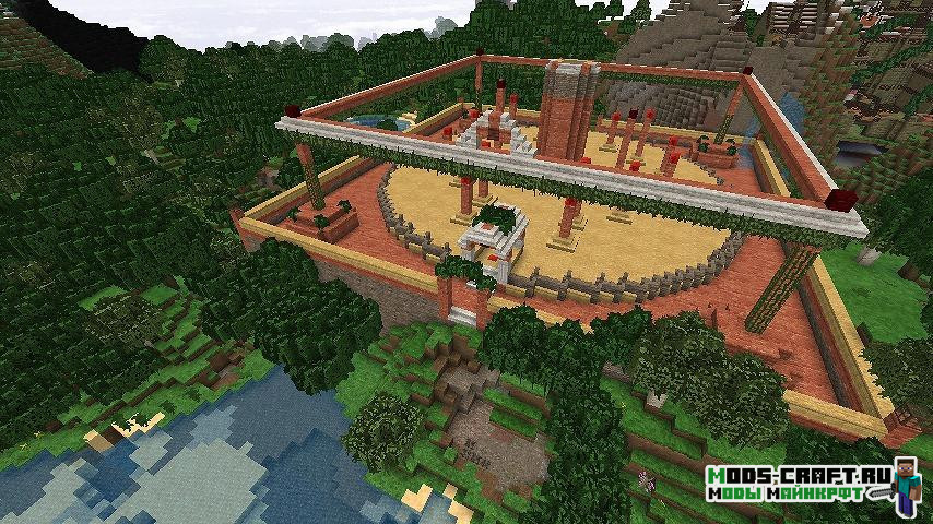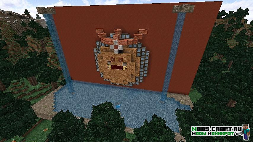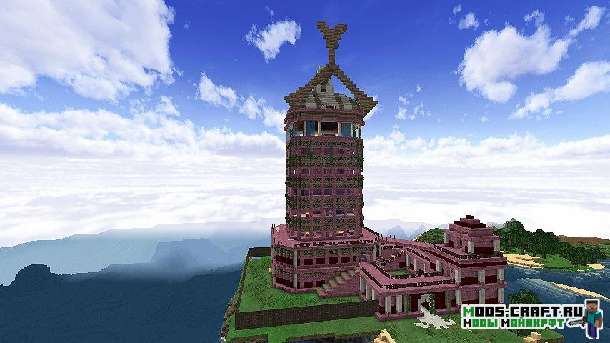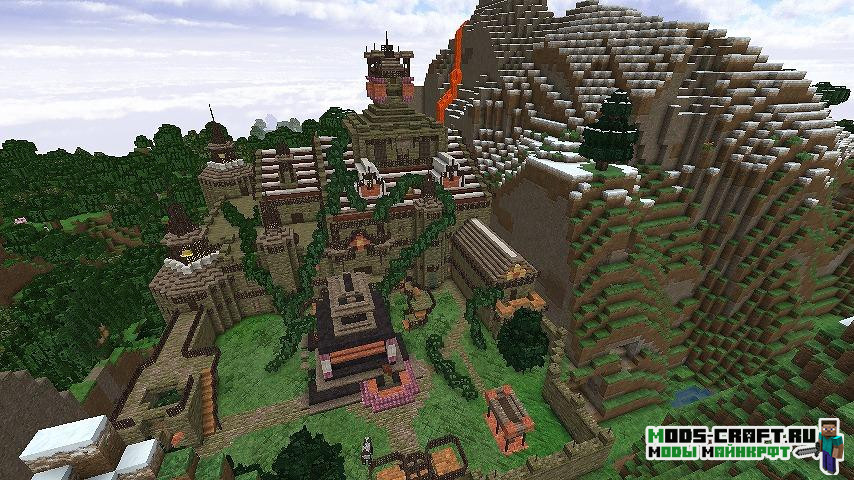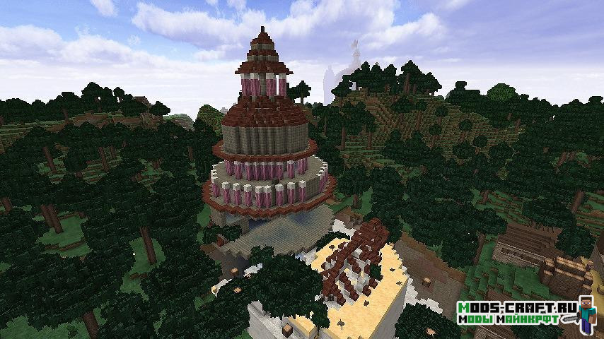 Теперь в мире Майнкрафт будут генерироваться более 90 видов различных данжей — это будут большие здания, подземелья с сокровищами и различные декоративные строения. В файле конфигурации мода можно настроить частоту генерации данжей и их типы.