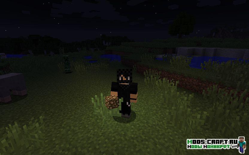 Очень полезный и удобный мод, который позволяет овещать себе путь с помощью факела, который будет в руке и его не придёться прикреплять на стену. Причём освещать будет также ведро с лавой, зажигалка, шарики с опытом и даже блок светокамня будут светиться прямо у вас в руках.