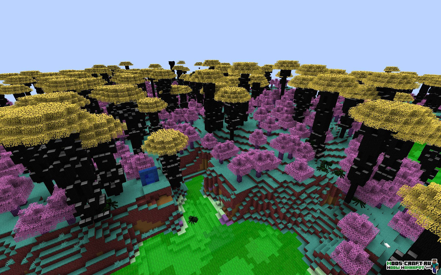 Пролетав в мире около часа, сделаю вердикт — мир и его генерация похожа на оригинальный, а пещеры немного не доработаны, но тоже в целом похожи на ванильные. Из мобов доминируют пауки, их тут огромное множество. Такое ощущение, что это паучий мир какой-то! А так, если углубляться в атмосферу мода, то можно пропасть на долгие часы. Попрошу людей, поигравших в мод, написать в комментариях — нашли ли вы деревню или что-то на неё похожее? Я так и не смог её отыскать.