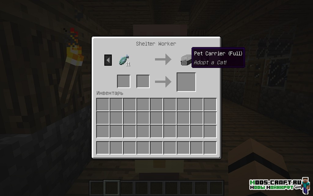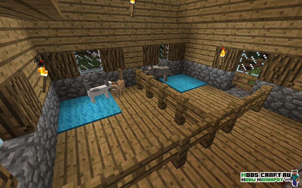 Мод Simply Cats добавляет новые виды кошек и котов в Майнкрафт! Теперь они будут разных цветов шести, глаз и смогут размножаться. Также появится специальный житель в деревни, который сможет продать вам специальный ящик для спавна собак и кошек. Найти его можно абсолютно в любой деревне.