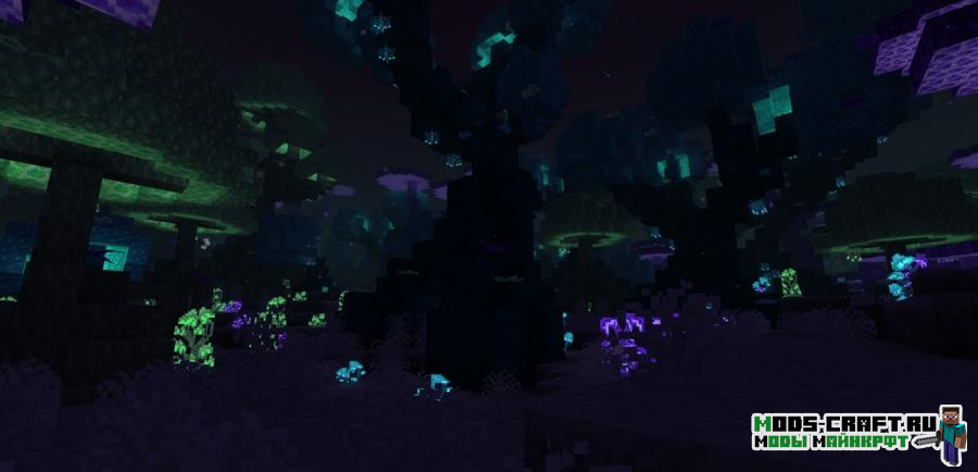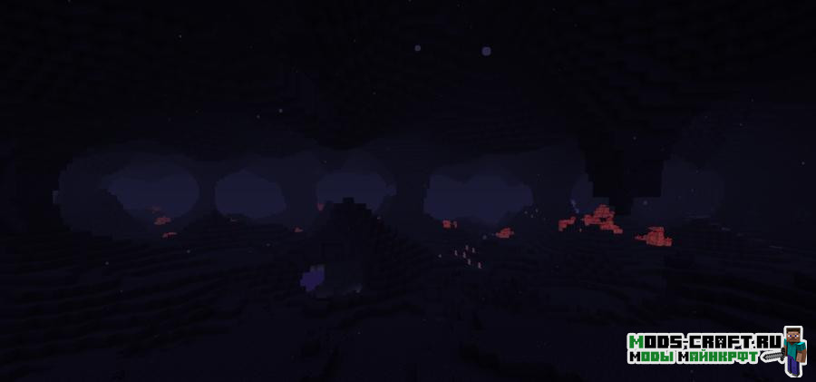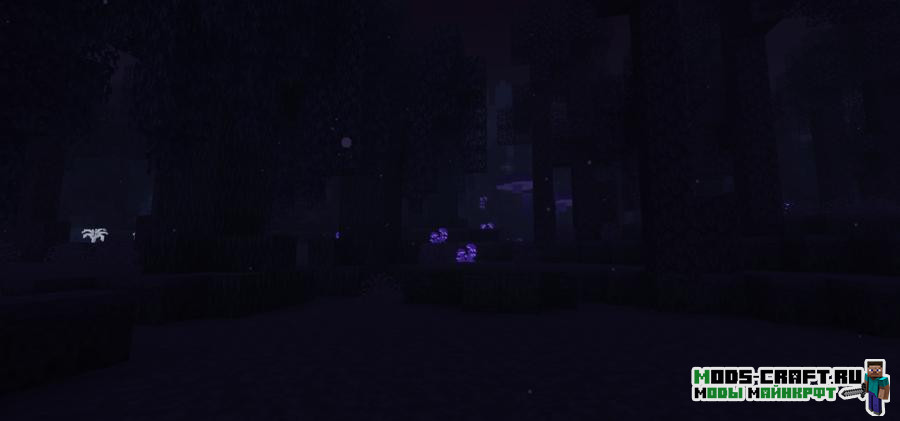 Мод The Midnight добавляет новое ночное измерение, которое пугает своей темнотой и таинственностью полное приключений и опасностей! В нём совершенно иная генерация, новые живые обитатели, растительность и блоки. Свечение будет происходить в основном от грибов и кристаллов. Отправляйтесь в путешествие прямо сейчас, но помните, там вам не рады.