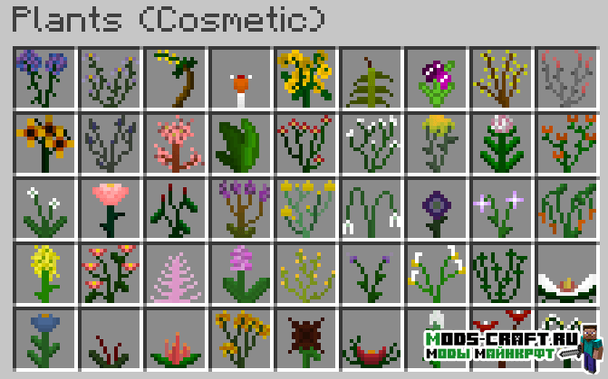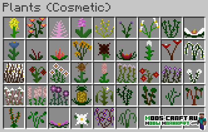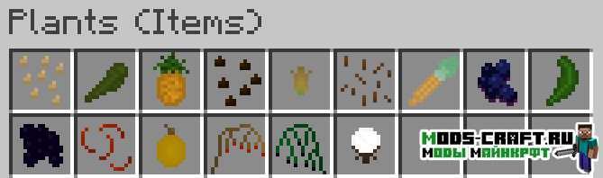 Мод Plants добавит множество видов новых растений в игру Майнкрафт — это будут цветы, рассады, овощи, фрукты, деревья и многое другое.