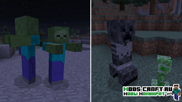 Мод добавит более ста новых мобов в игру minecraft. В основном это враждебные мобы, которые созданы на основе вариаций ванильных монстров, но с отличительными чертами и своими способностями.