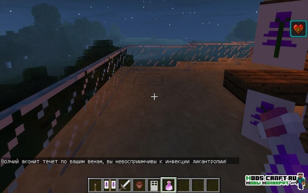 Но не забывайте, что будут спавниться ещё и охотники на оборотней — они выглядят как обычный Стив со специальным мечом и жемчугом оборотня (нейтральны к игроку, если он не заражён).