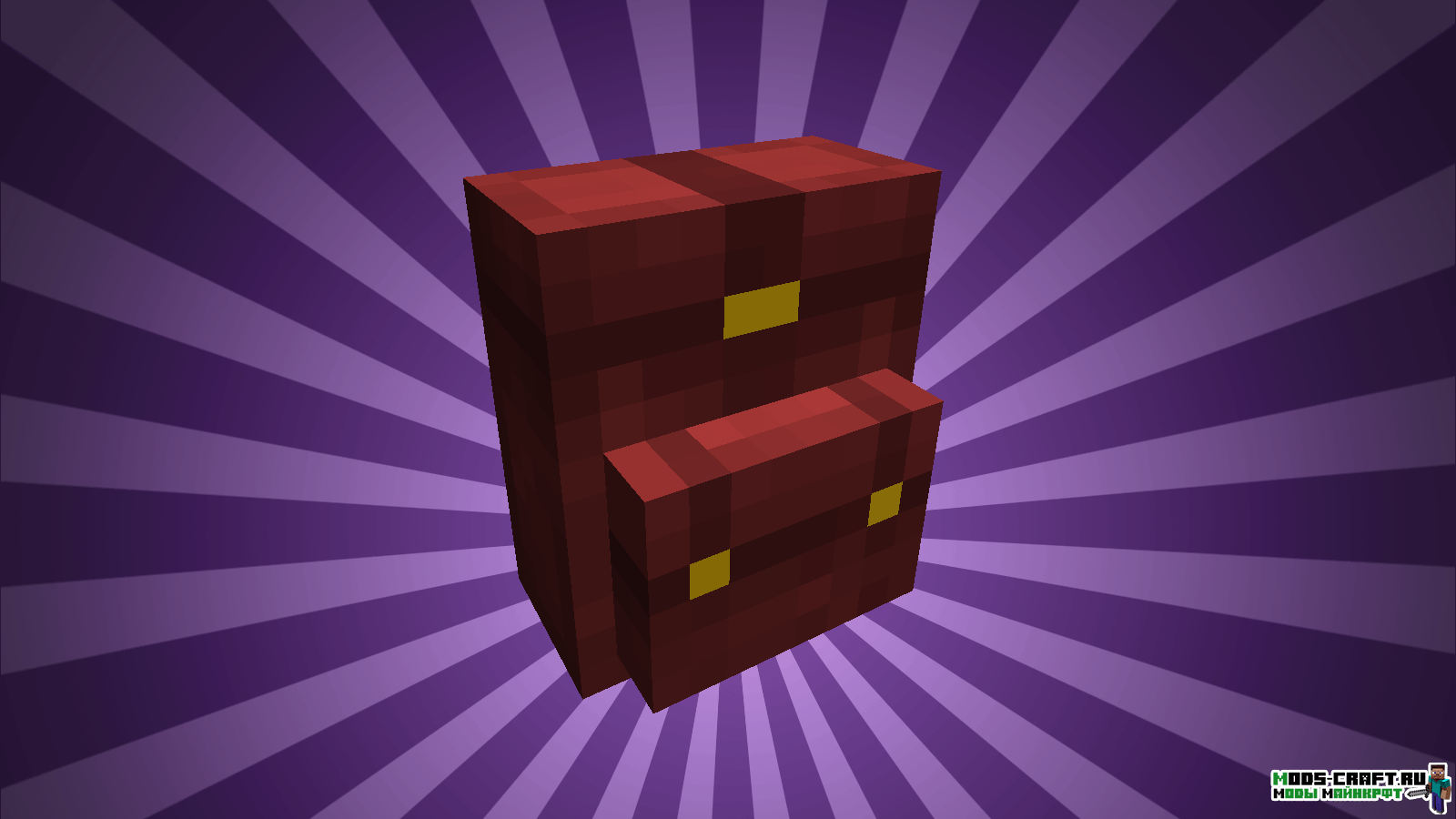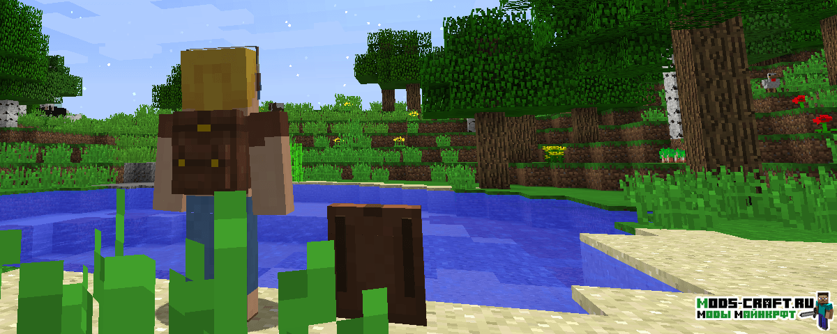 Мод добавит в Майнкрафт вместительные рюкзаки, в которые можно носить свои вещи и лут. При одевании ранца на скине он будет отображаться как обычно на спине.