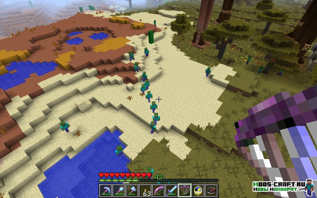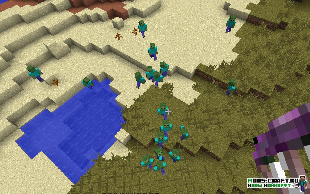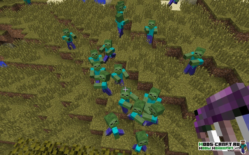 Стало скучно бродить по миру от лёгкой сложности и безопасности? Тогда установите мод CrackedZombie, который сделает зомби более сложными. А именно, сделает их нерест днём и во много раз больше. Атаковать они станут группами и будут пытаться окружить игрока со всех сторон, так что будьте осторожны. Вам будет предоставлен случайный меч для своей стартовой защиты.