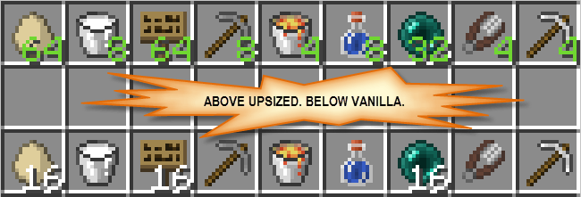 Теперь ты сможешь хранить больше вещей в инвентаре, а именно стакать предметы, которые ранее нельзя было объединять. Например, вы сможете объединить в один стак несколько одинаковых кирок, мечей, ведер и других вещей. Пример вы можете посмотреть ниже на картинке.