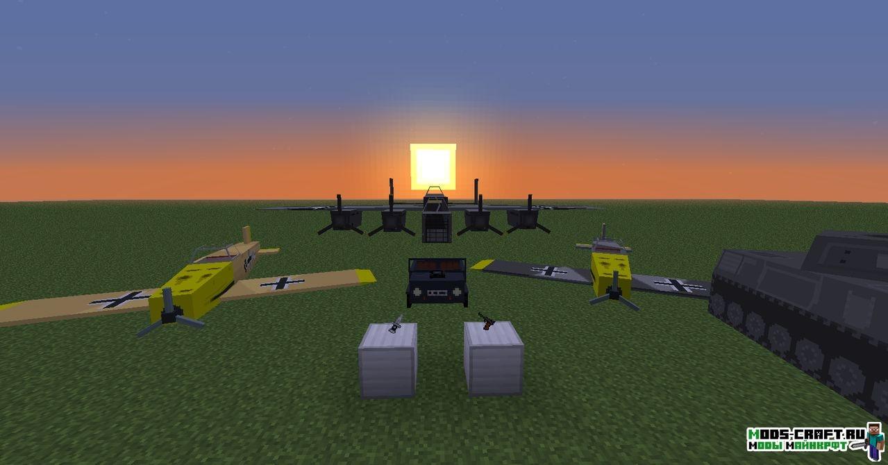 Помимо танков, мод с оригинальным названием Flan’s World War Two Pack добавит ещё самолёты, оружие, патроны, медикаменты, кейсы и амуницию в minecraft. Всё это времён Великой отечественной войны 1941-1945 годов, где вы сможете принять сторону конфликта, лично я рекомендую играть за СССР.