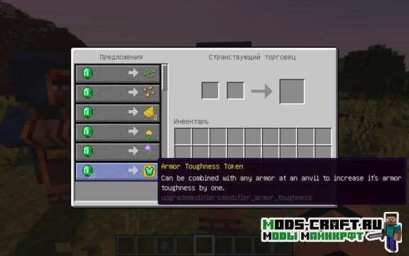 Мод Upgrade Modifiers позволяет улучшать вашу броню с помощью специальных жетонов улучшения. Получить эти жетоны можно у нового странствующего торговца или выполняя различные квесты и миссии.
