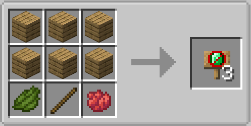 Мод добавит специальную табличку, которая будет запрещать спавн странствующего торговца в определённом радиусе. Просто разместите её в необходимом вам месте и табличка начнёт свое действие.