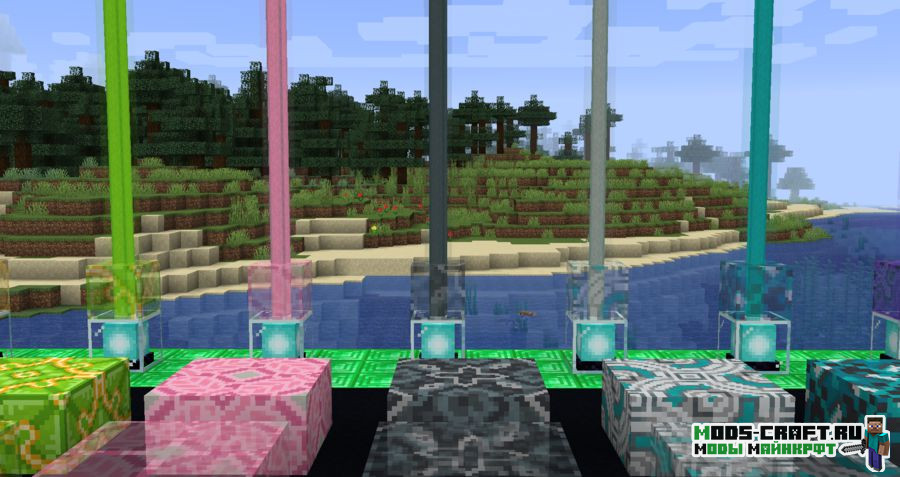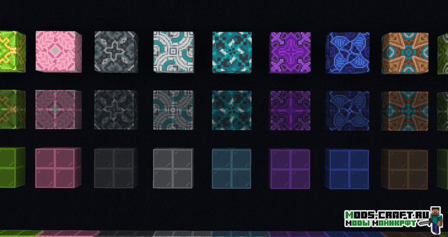 Patterned Glass добавит декоративное узорчатое стекло в игру Майнкрафт. Их можно создать в двух вариациях: стеклянные блоки и стеклянные панели.
