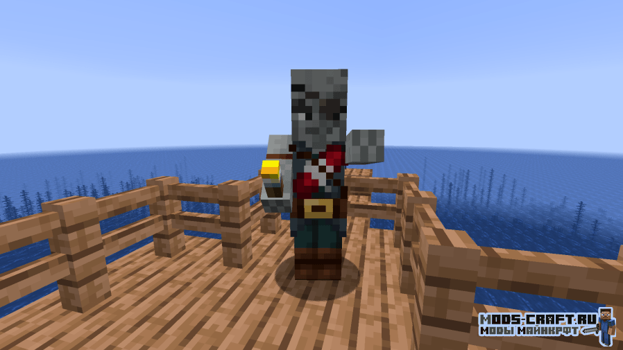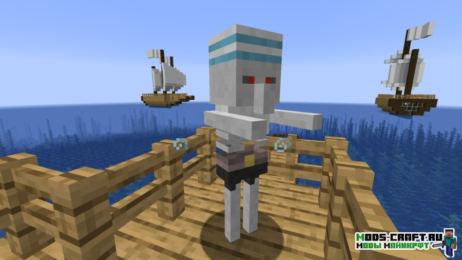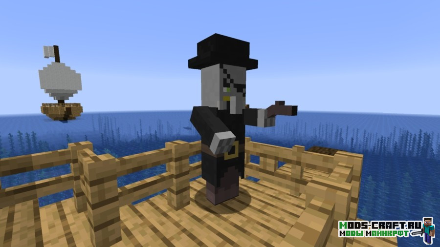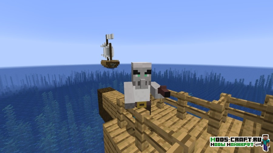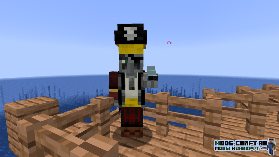 Модификация разнообразит бескрайний и пустой океан, добавив в него генерируемые пиратские корабли. На них вы сможете сразиться с пиратами, скелетами-пиратами и мощный боссом — капитаном корабля, обладающим 150 жизнями и ценным дропом в виде алмазного блока и тотема бессмертия. Также будет добавлен новый биом, где растут пальмы.