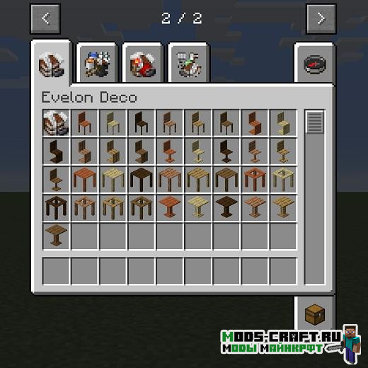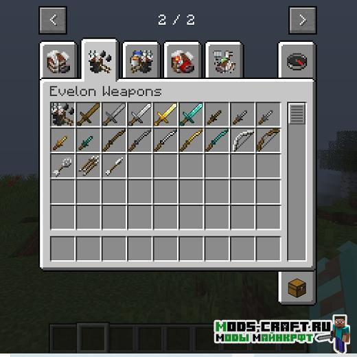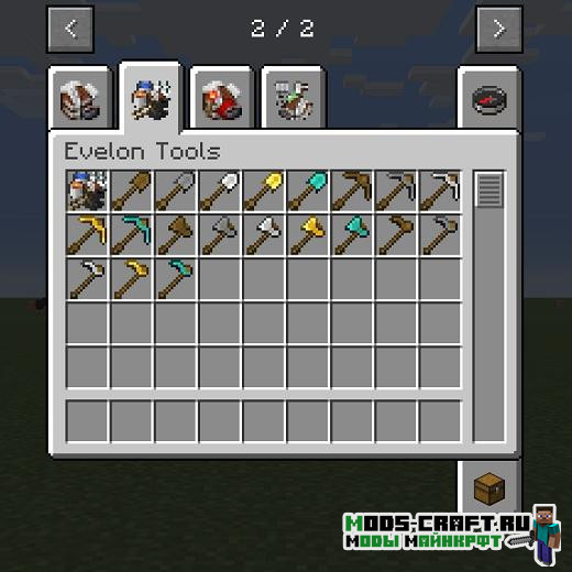 Planet Evelon — это глобальный мод, который расширяет Майнкрафт во всех направлениях: добавляет новые декоративные блоки, бочки-хранилища, специальная печь с новыми рецептами, а также улучшенные стандартные инструменты и оружие.