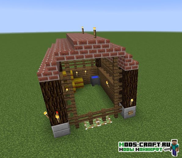 Мод Prefab позволит вам мгновенно возводить постройки из одного блока. Это будет большая коллекция строений, состоящих из различных ферм и домов. Кроме этого, перед возведением такой постройки вы сможете настроить ряд параметров. Крафт некоторых таких строительных блоков будет дороговат, но на простые постройки не нужно много.