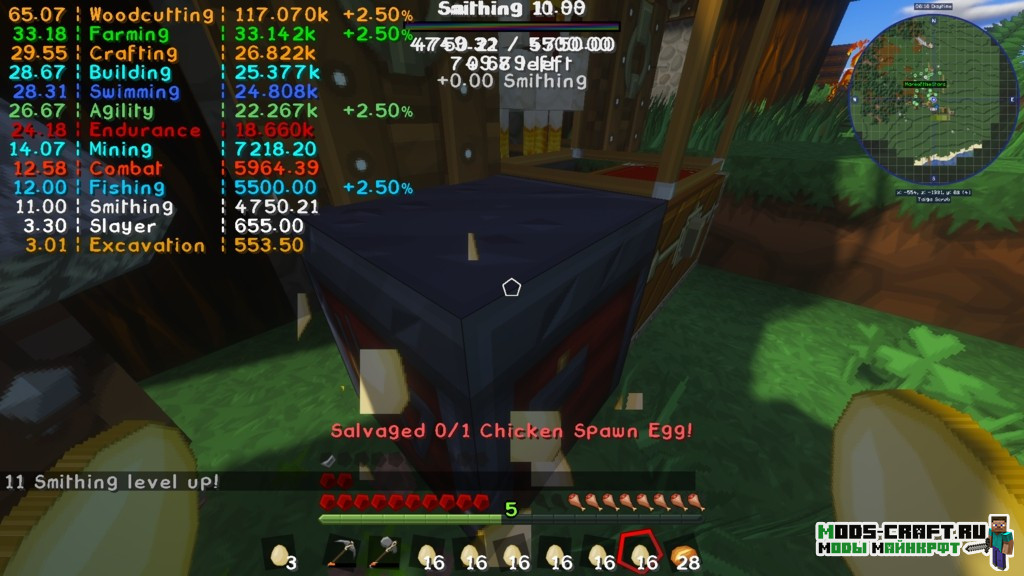 Большой РПГ-мод, который вносит новые механики и изменения геймплея в Майнкрафт. С ними для использования определённого вида оружия, инструментов, брони необходимо получить какой-то уровень, но смерть может немного отнять того самого опыта для исследования навыка. Толпы мобов будут скалироваться в зависимости от вашего уровня прокачки.