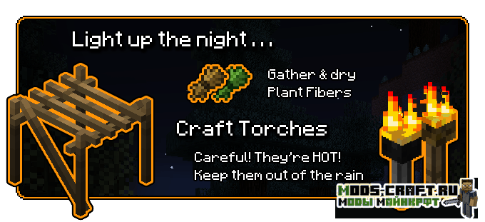 Pyrotech — это очень интересная модификация, которая расширяет ранние этапы игры различными устройствами плавки и сжигания, механизмами, примитивными устройствами, инструментами, факелами и новыми достижения. Устройства работают довольно просто и не имеют никакого крафта, каждый должен без труда разобраться в принципе их работы ведь они очень просты для освоения и игрок взаимодействует с ними напрямую без дополнительных инструментов.
