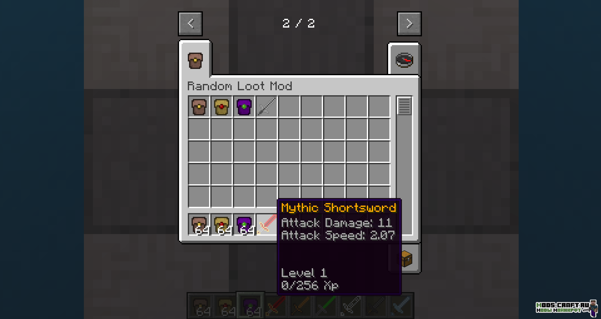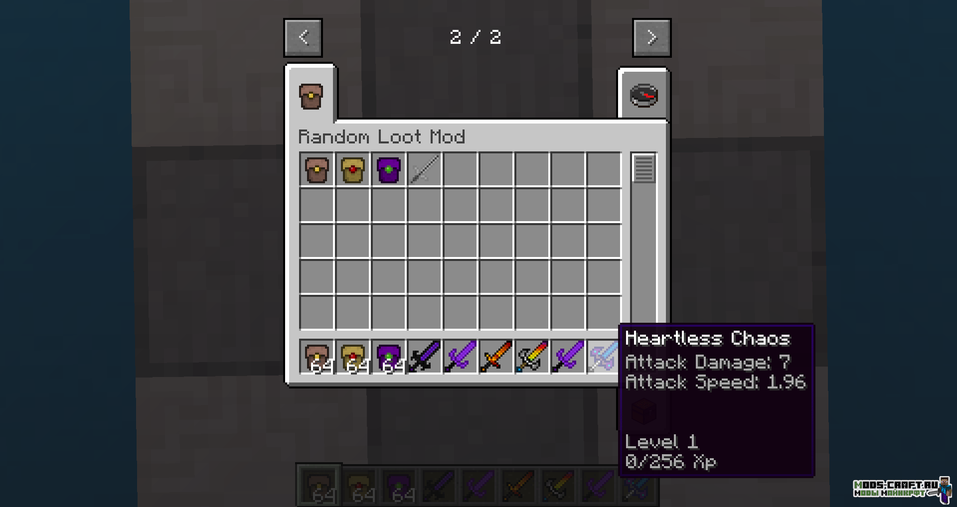 Мод Random Loot добавляет три вида кейсов (базовый, золотой и титановый), из которых будет выпадать оружие и инструменты со случайными характеристиками урона, скорость атаки и эффекты чар. Заполучить такие кейсы можно в подземельях и просто убивая мобов.