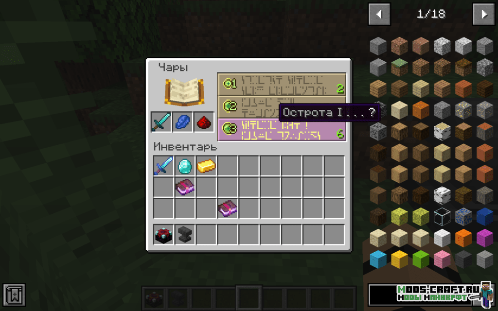 Reagenchant — это мод, добавляющий новый слот под реагент в меню зачарования. Он необходим, чтобы поместить туда определённый предмет (например, железо, алмазы, золото и пр.) и повысить шанс выбора определённого зачарования. Вы можете самостоятельно добавлять реагенты и изменять их свойства в настройках мода.
