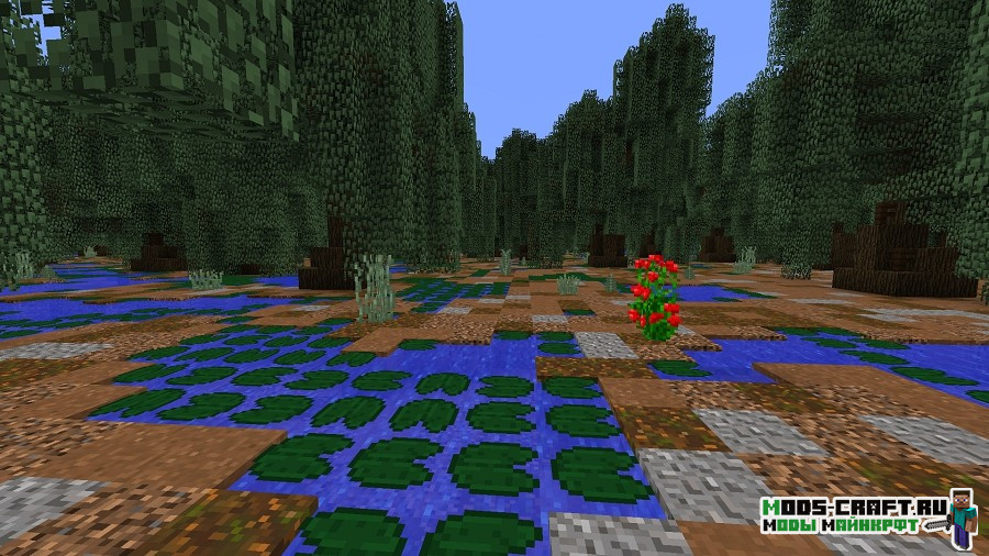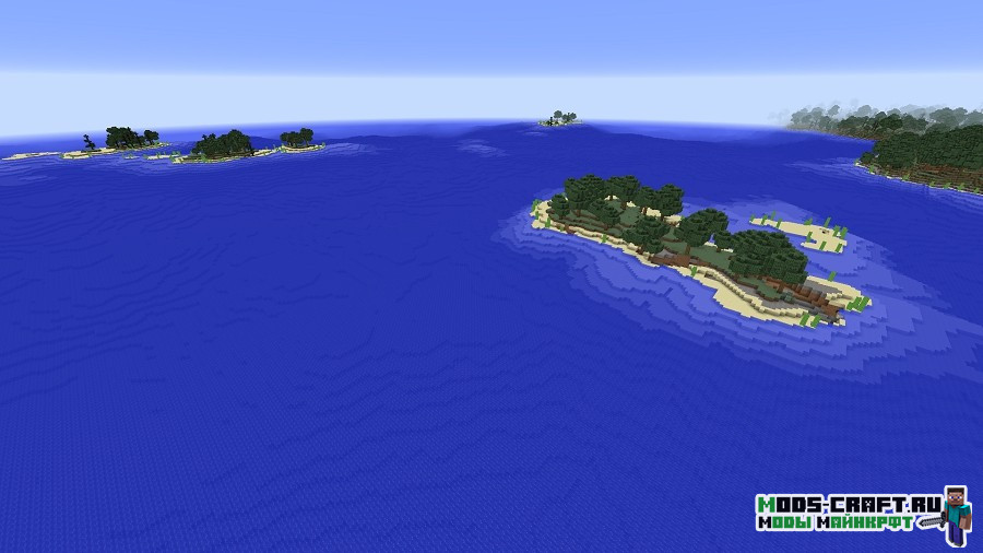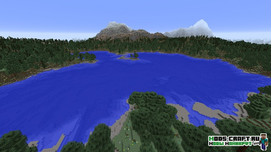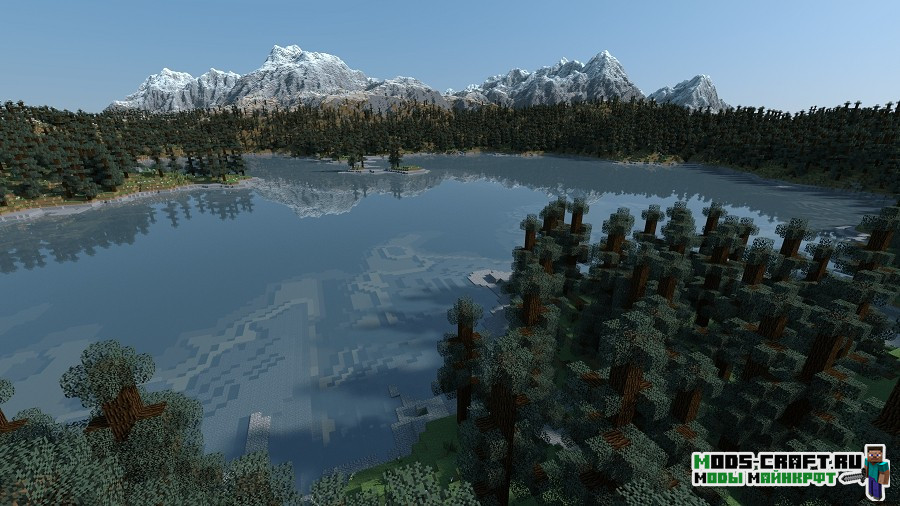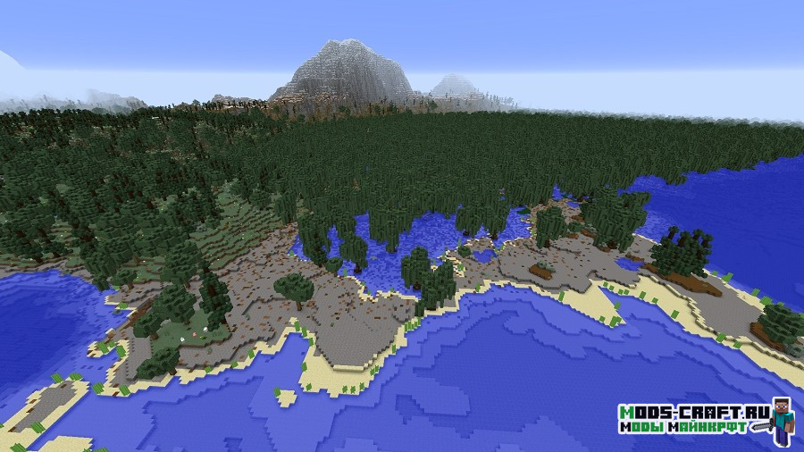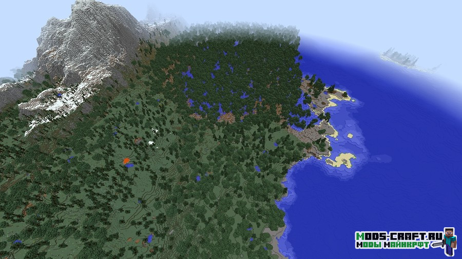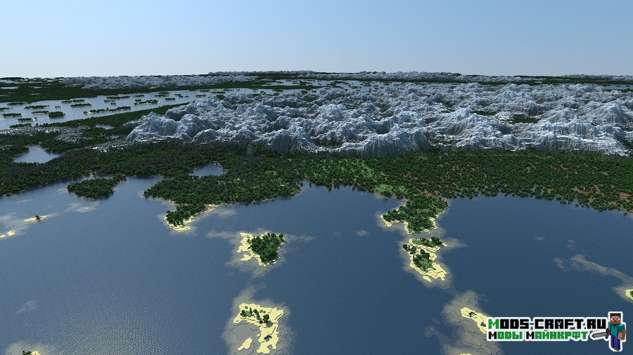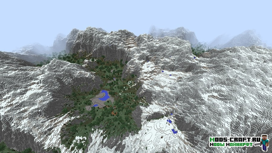 Realistic Mountains добавит два новых типа генерации мира — это реалистичные ледяные горы. Полностью поменяется ландшафт, вы увидите красивые перепады высот и берегов океана до ледяной горной вершины.
