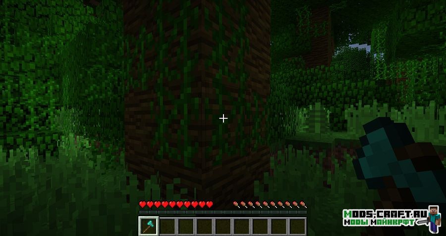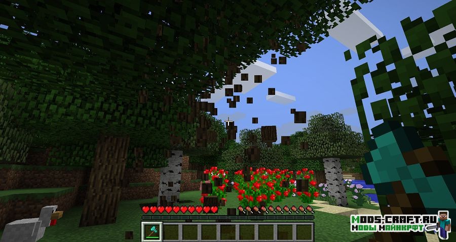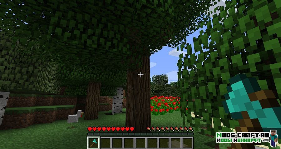 Мод Reap сочетает в себе две очень полезных функции, с которыми играть очень удобно и интересно — это собирание урожая на правую кнопку мыши, а также его автоматическое засеивание. И быстрая добыча дерева: для этого необходимо лишь срубить нижний блок дерева, чем-то напоминает старый добрый TreeCapitator.