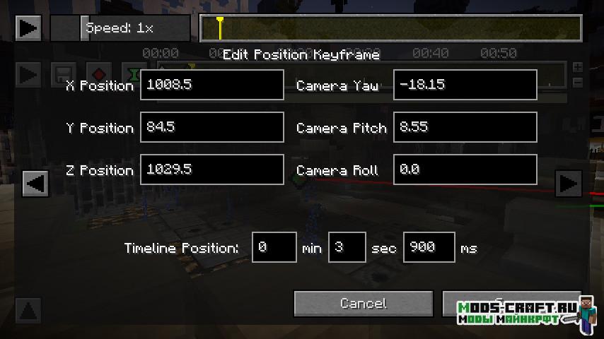 Довольно интересная модификация для тех людей, которые хотят снимать ролики в Майнкрафт и не использовать сторонние программы. Кроме этого вы можете записать свои действия и снимать их под разными сторонами и углами, чтобы добавиться полной атмосферы вашего творения. Иными словами, Вы будете со стороны смотреть за своей игрой да и ещё можете накладывать разные фишки с камерой и эффектами. Так можно снимать короткометражные фильмы по Майнкрафт.