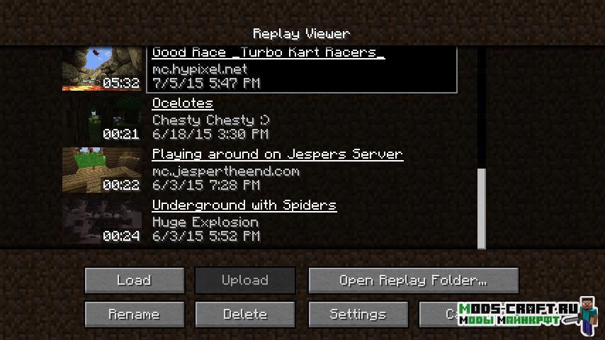 Скачать мод Replay для майнкрафт