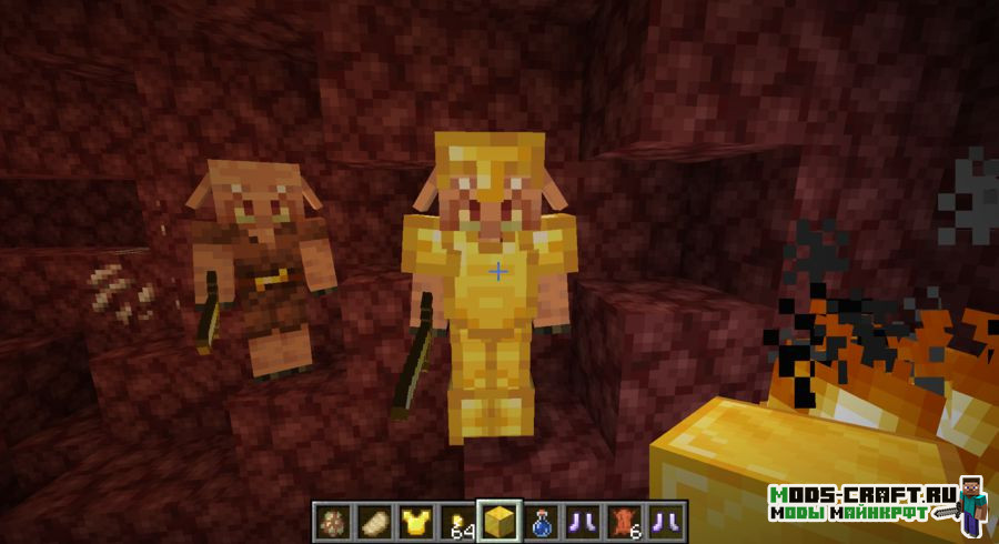 Мод Sapience улучшает поведение Пиглинов в игре, делая их умнее. Например, у них появится система репутации, аналогично деревенским жителям; они смогут подбирать еду с поверхности и есть её, восстанавливая своё здоровье; создавать себе оружие и броню из золота, а также вести размножение при помощи малиновых грибов.