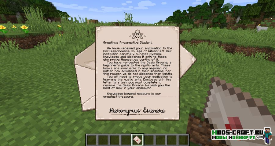 Порт старой модификации Schools of Magic для версии игры 1.16.5, позволяющий игроку стать настоящим волшебником! Изучайте и используйте заклинания магических школ отречения, вызывания, иллюзии, гадания и преображения. Для начала вам необходимо получить аркану, которую можно получить от ведьмы, вызывателя или иллюзора; палочку-ученика и магический подиум, на которую нужно разместить книгу с заклинаниями.