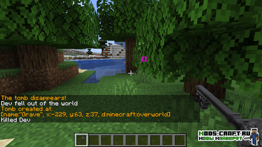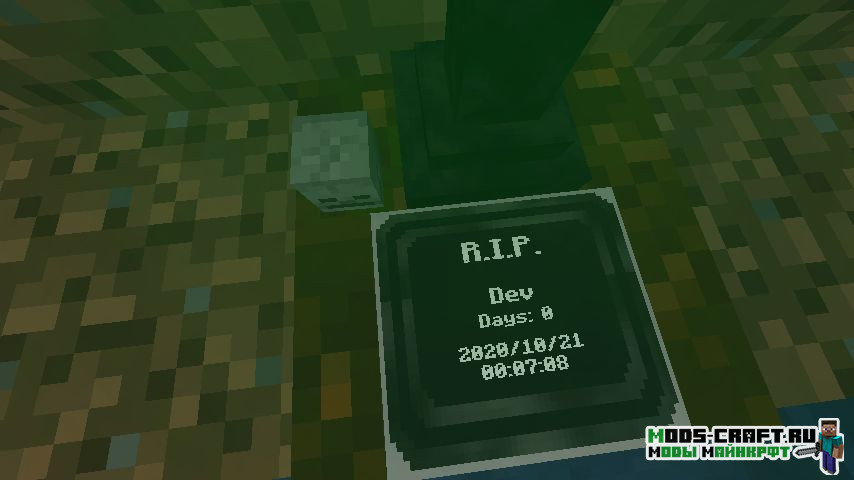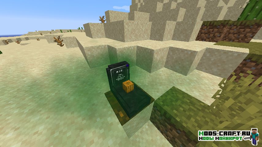 Когда вы умрёте, на этом месте появится могила с предметами. А после респавна вы получите ключ, с помощью которого можно отыскать гробницу (если взять его в руку, то будет подсвечено место захоронения). После достижения определённого радиуса, вы сможете мгновенно телепортироваться к гробнице, нажав ПКМ с ключом в руке. Гробницу не может открыть другой игрок, она доступна только вам.