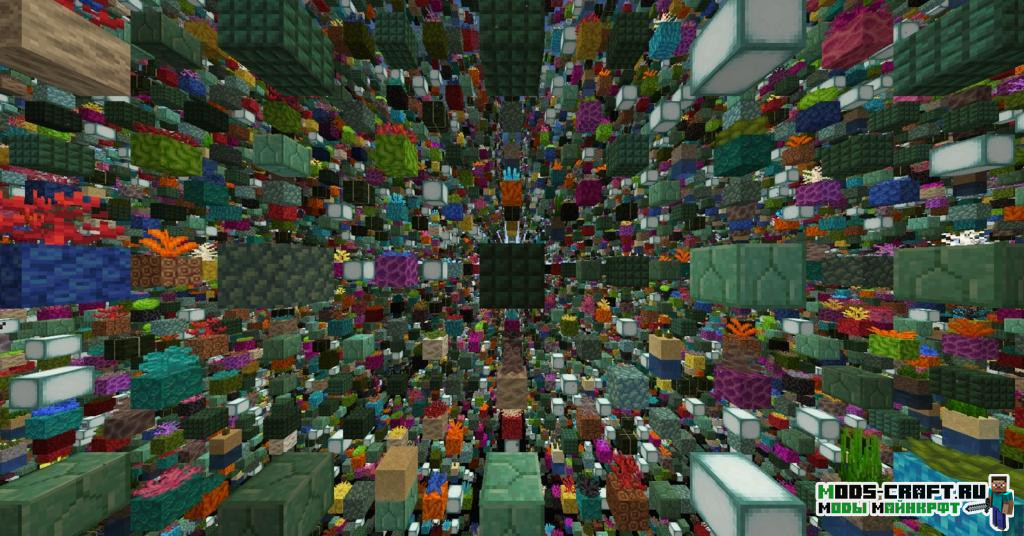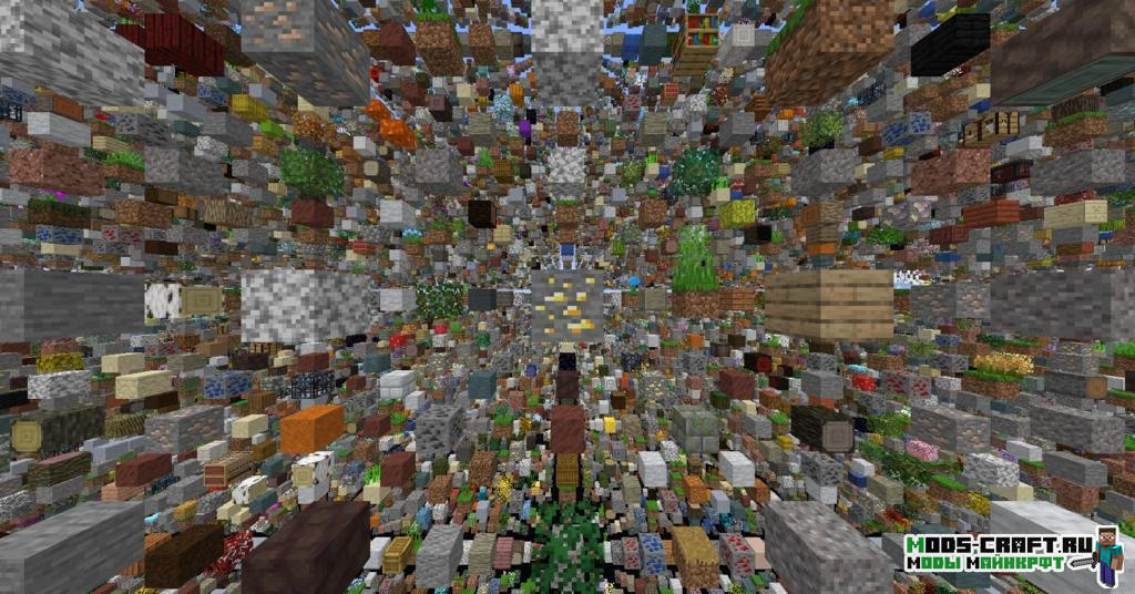Модификация позволяет создать мир с новым и популярным типом генерации — Скайгрид. Этот мир состоит из разнообразных блоков, расположенных друг от друга на расстоянии в 4 блока.