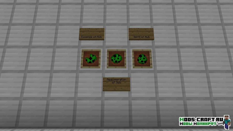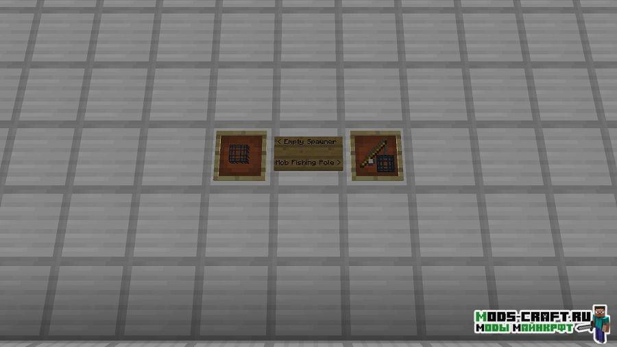 Теперь можно создавать яйца спавна мобов и сами спавнеры. Чтобы начать создавать яйца крафта необходимо создать удочку-спавнер, с помощью которой убивайте мобов и получайте частицы живой сущности. Последнее, что нужно — это поставить яйцо в пустой верстак и мы получаем спавн-сущности.